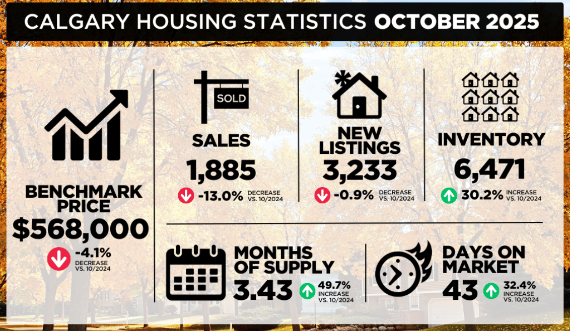 October brought a shift in Calgary’s housing market as new listings slowed and sales picked up. Detached homes remain steady, while row- and apartment-style units are seeing more supply, giving buyers added choice and negotiating power.